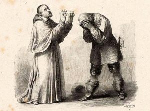 È quel frate che si trova nel paese vicino, Fra Cristoforo. Si inchina come segno di rispetto e alza la mano per salutare gli altri. Subito lo faccio accomodare e gli offro un bicchiere di vino come è giusto fare, e nonostante non accetti, insisto. Mi dice di voler parlare di qualcosa di importante e allora io gli rispondo dicendo che parleremo dopo.