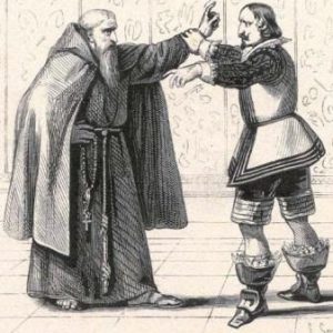 Stiamo parlando quando il frate ci interrompe e insiste con il fatto di voler parlare con me, allora lo porto in una stanza. Inizia il discorso riferendosi al fatto che certi abbiano fatto il mio nome per quanto riguarda l’oppressione di due giovani innocenti. Capisco di chi stia parlando, ma per non finire nei guai, visto che Fra Cristoforo non è come Don Abbondio, lui cerca di ottenere la mia confessione ma invano, svio l’argomento alla nomina di Dio. Io per quanto lui stia cercando di non essere ostile, parlandomi in modo diplomatico, mi infastidisco lo stesso a causa della sua indiretta accusa e allora inizio a prenderlo in giro parlandogli in modo malvagio e sfidandolo.