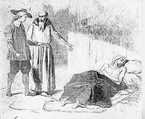 Sto tornando a casa dopo un festino celebrato per la morte di Attilio, il mio caro cugino… Che riposi in pace. Mi corico sul letto sentendo un grave senso di malessere e cerco di capire a cosa sia dovuto. Forse al caldo, al vino o agli stravizi ma il pensiero della pesta si insinua prepotente. Malgrado il dolore, riesco ad addormentarmi. Mi sveglio urlando pensando all’incubo appena fatto. Avevo sognato di trovarmi in una chiesa tra una folla raccapricciante e di rivedere l’incontro con Fra Cristoforo che avevo cercato di dimenticare. Nel frattempo guardo verso dove sento il dolore e scopro di avere un bubbone livido. Terrorizzato, chiamo il Griso pregandolo di andare a chiamare il chirurgo Chiodo che lo avrebbe curato. Ma il Griso, approfittandosi del mio malessere, mi disubbidisce e si rivolge ai monatti e con essi mi deruba. Ormai ho perso tutto, non posso più fidarmi di nessuno. Sono debole e arrabbiato ma non posso fare niente per sfogare la mia ira. Oltre a tutto il male successo fin ora, la malattia si aggrava e perdo conoscenza.