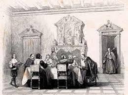 Dopo il mio brindisi l argomento della cena è cambiato di nuovo, infatti abbiamo iniziato a parlare della carestia, però non so bene cosa sia successo, so solo che a un certo punto Don Rodrigo si allonta con il frate ed è tornato  10 minuti dopo solo e  con aria scocciata e spaventata.